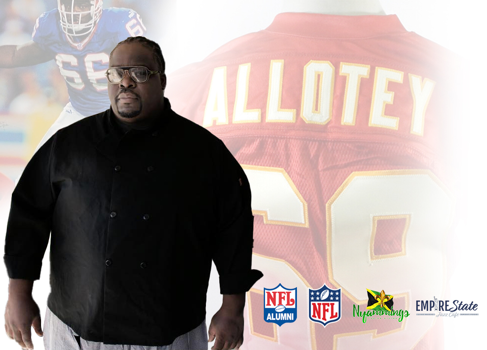 Founded by former NFL player Victor Allotey, our establishment champions community ties and immerses diners in rich flavors and inviting atmosphere.